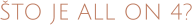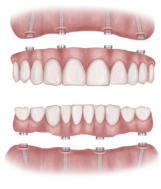 Metoda ALL ON 4 u prijevodu bi značilo sve na četiri implantata. Riječ je o metodi patentiranoj od strane Nobel Biocare tvrtke pri čemu se izrađuje fiksni zubni most za bezubu gornju ili donju čeljust, koji je sidren na 4 posebno postavljena implantata i pričvršćen vijcima. To je idealno rješenje za pacijente koji imaju potpunu protezu duži niz godina i gdje je tijekom vremena došlo do teškog gubitka kosti, posebno u bočnom stražnjem dijelu.